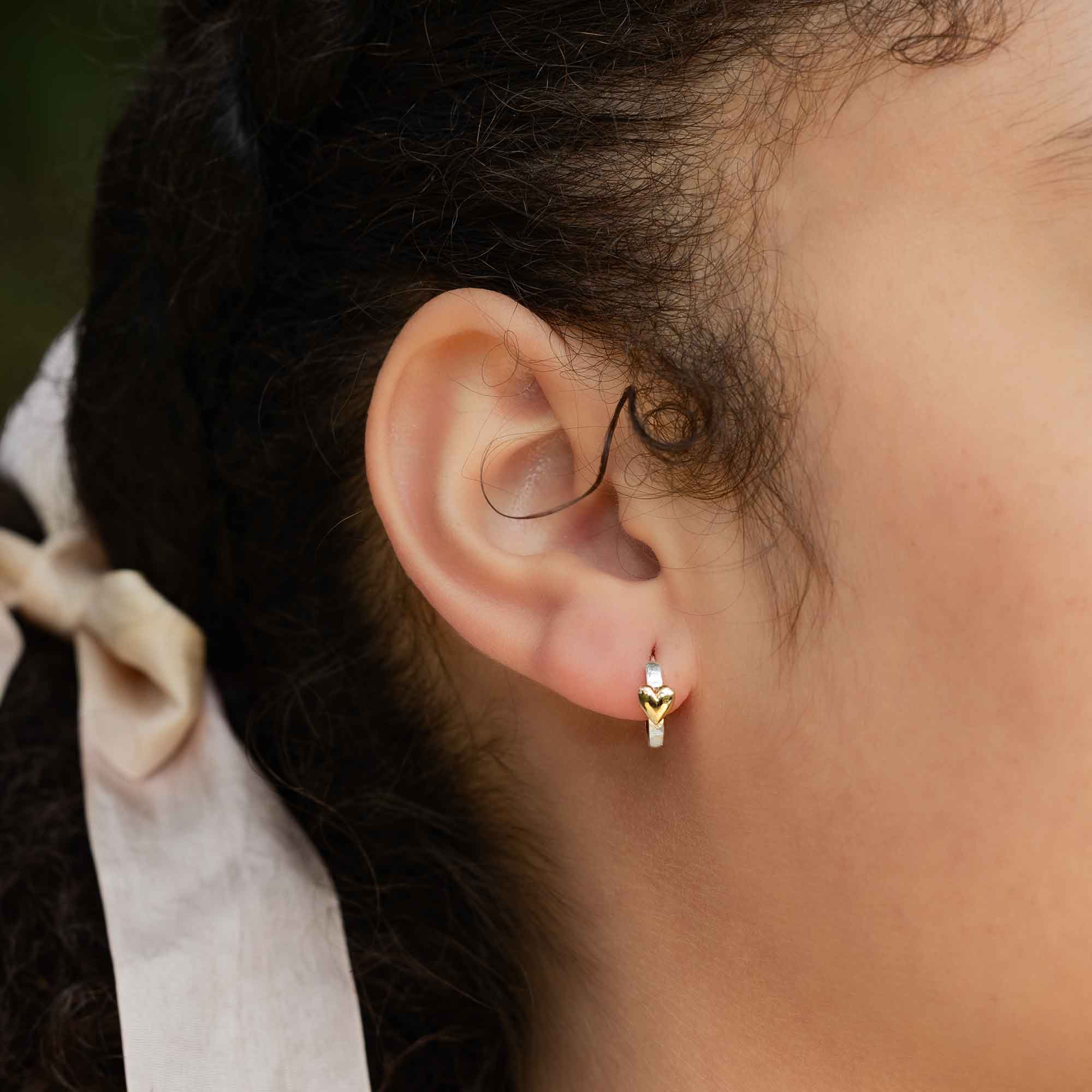 Sweet and sophisticated, these huggie hoops feature a small bronze heart accent on sleek sterling silver hoops. The mixed metal design adds warmth and contrast, making them versatile enough for everyday wear or special occasions. Lightweight, secure, and full of charm, these hoops are a subtle way to wear your heart every day.