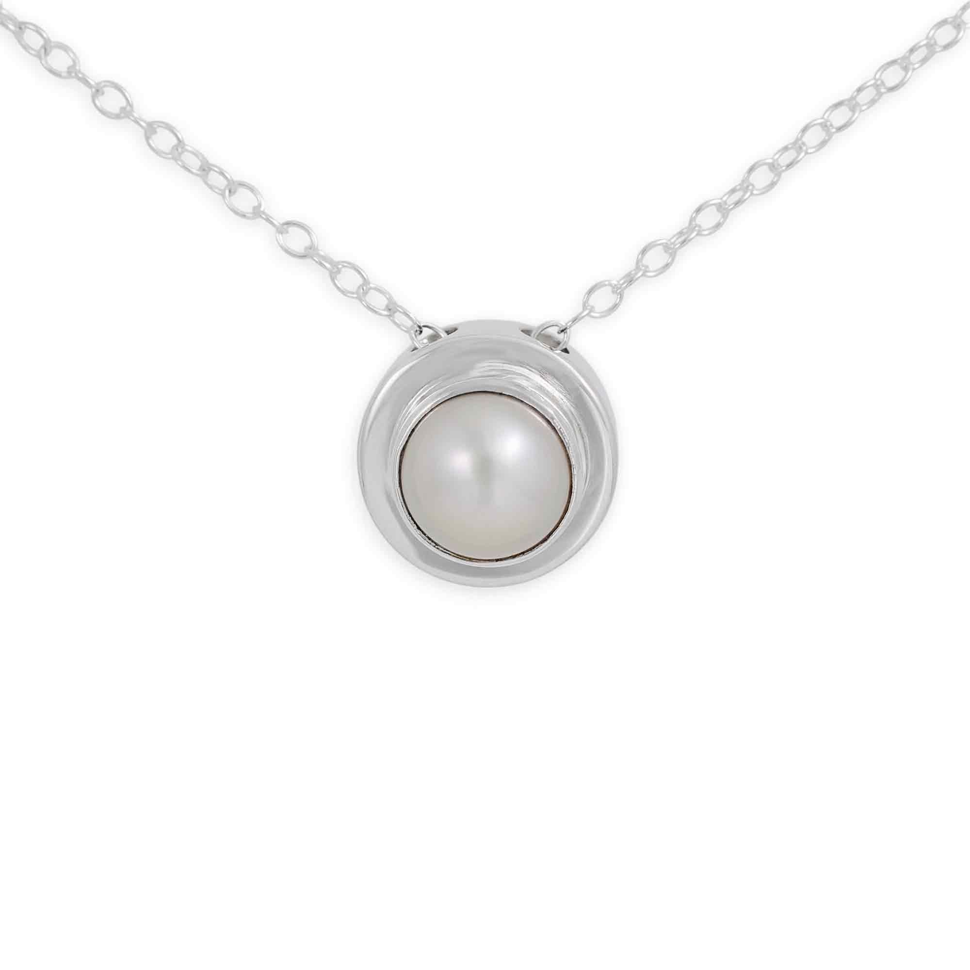 Understated elegance defines our Sterling Silver Solitaire Pearl Slider Necklace. A single luminous freshwater pearl glides gracefully along a delicate silver chain, catching the light with every movement. The minimalist bezel setting highlights the pearl’s natural radiance, allowing its beauty to shine without distraction. This timeless design embodies effortless sophistication and quiet luxury.